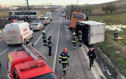 Vineri, 14 noiembrie a.c., pompierii din cadrul Detașamentului Botoșani au fost solicitați să intervină la un accident rutier produs pe DN 24, pe ruta Botoșani – Săveni, unde un camion încărcat cu aproximativ 25 de tone de semințe de floarea-soarelui s-a răsturnat în afara părții carosabile.