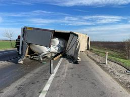 Camion răsturnat pe un drum național